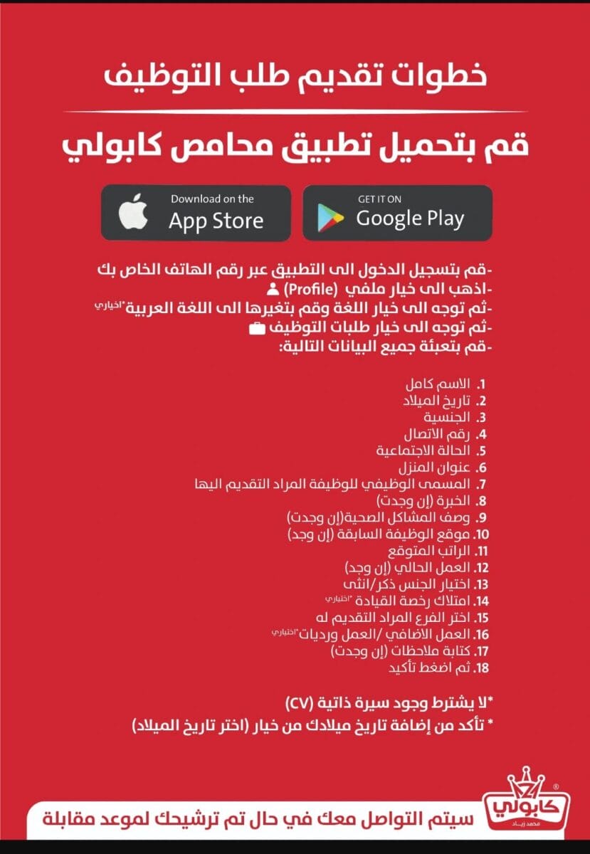 للتقديم على الوظيفة يجب اتباع الخطوات التالية عبر تطبيق كابولي: