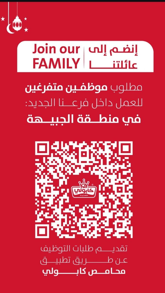 تعلن كابولي عن فتح باب التوظيف لموظفين متفرغين للعمل داخل الفرع الجديد في منطقة الجيزة.