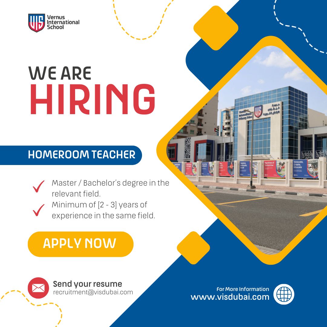 تعلن Vernus International School عن فتح باب التوظيف لشغل وظيفة Homeroom Teacher (معلم/ة صف) ضمن بيئة تعليمية احترافية توفر استقرارًا مهنيًا ونموًا طويل الأمد.