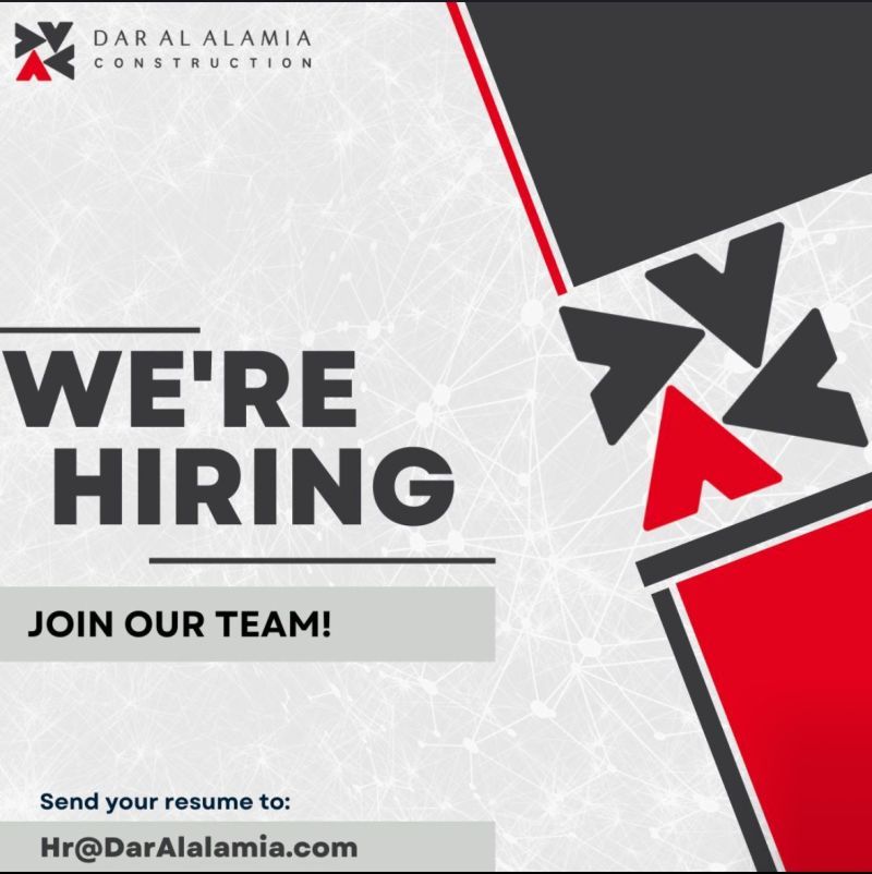 تعلن شركة Dar Al Alamia Construction عن فتح باب التوظيف للانضمام إلى فريقها ضمن مشاريع إنشائية كبرى في المملكة.
