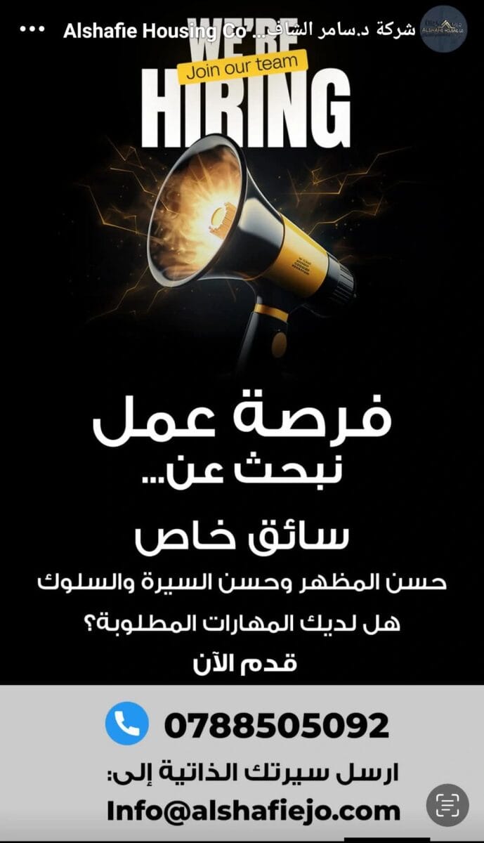 🚨 توظيف فوري: سائق خاص في الأردن – العدد محدود