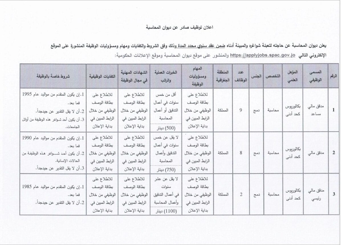 وظائف ديوان المحاسبة برواتب تصل 1100 دينار