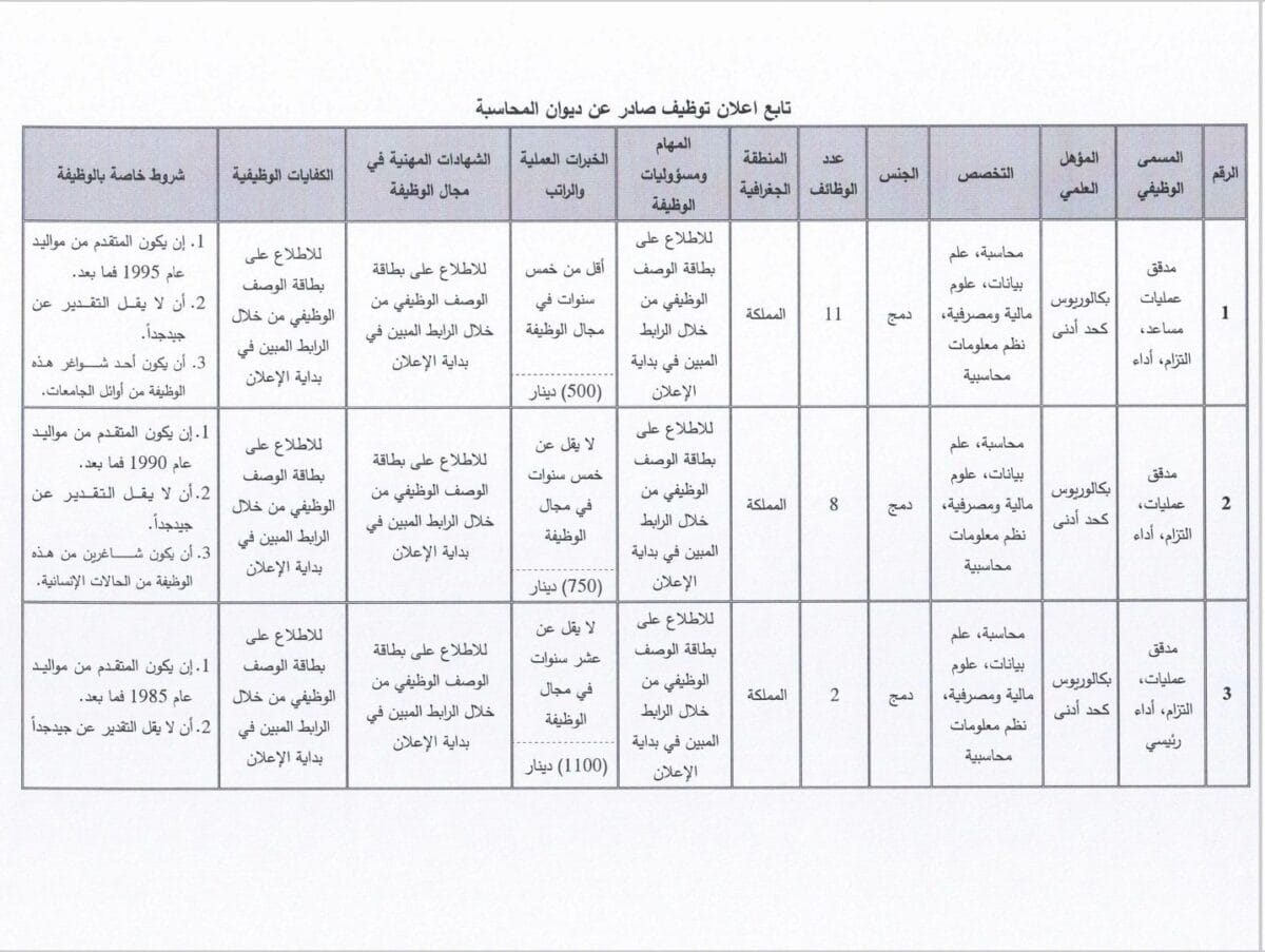 وظائف ديوان المحاسبة برواتب تصل 1100 دينار