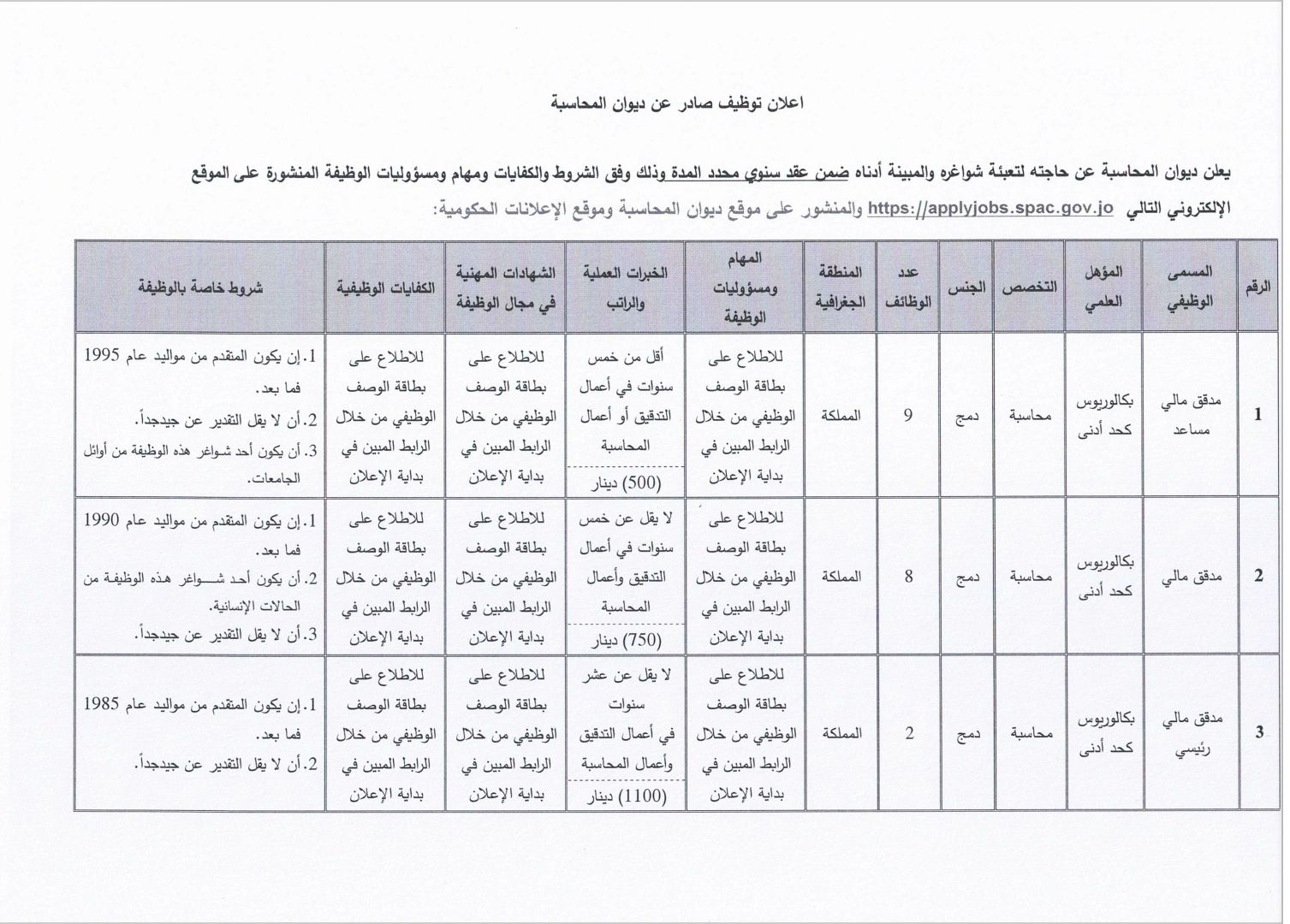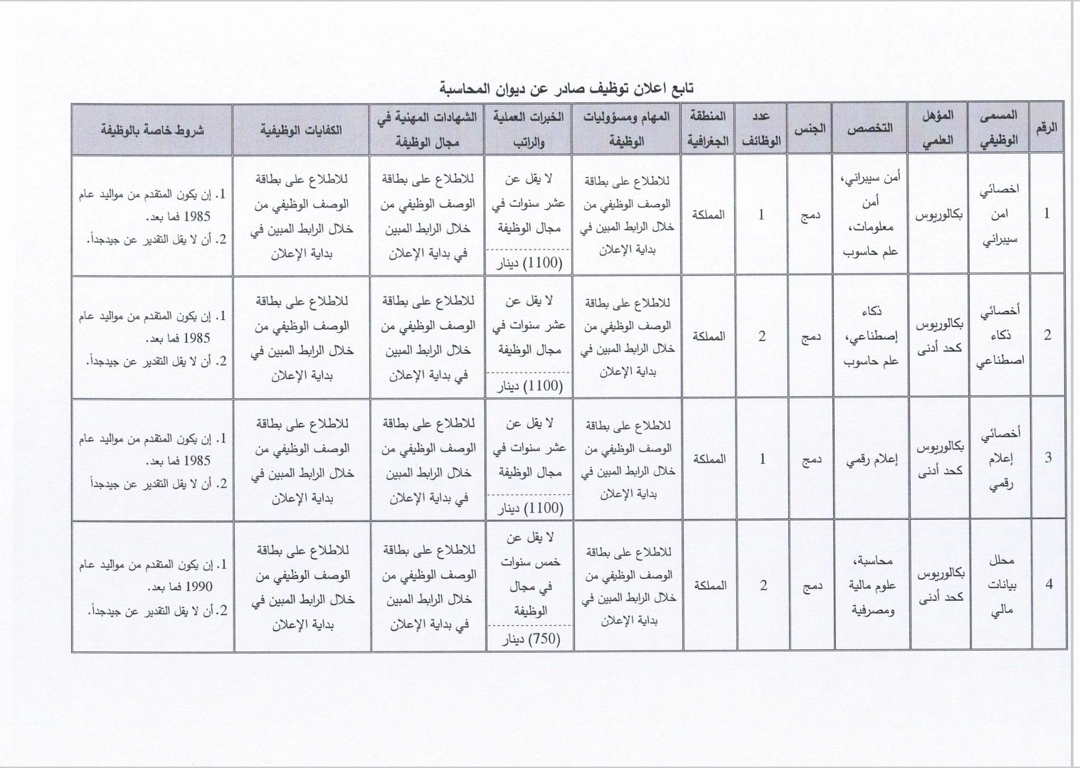 • رواتب حكومية تصل إلى 1100 دينار أردني.