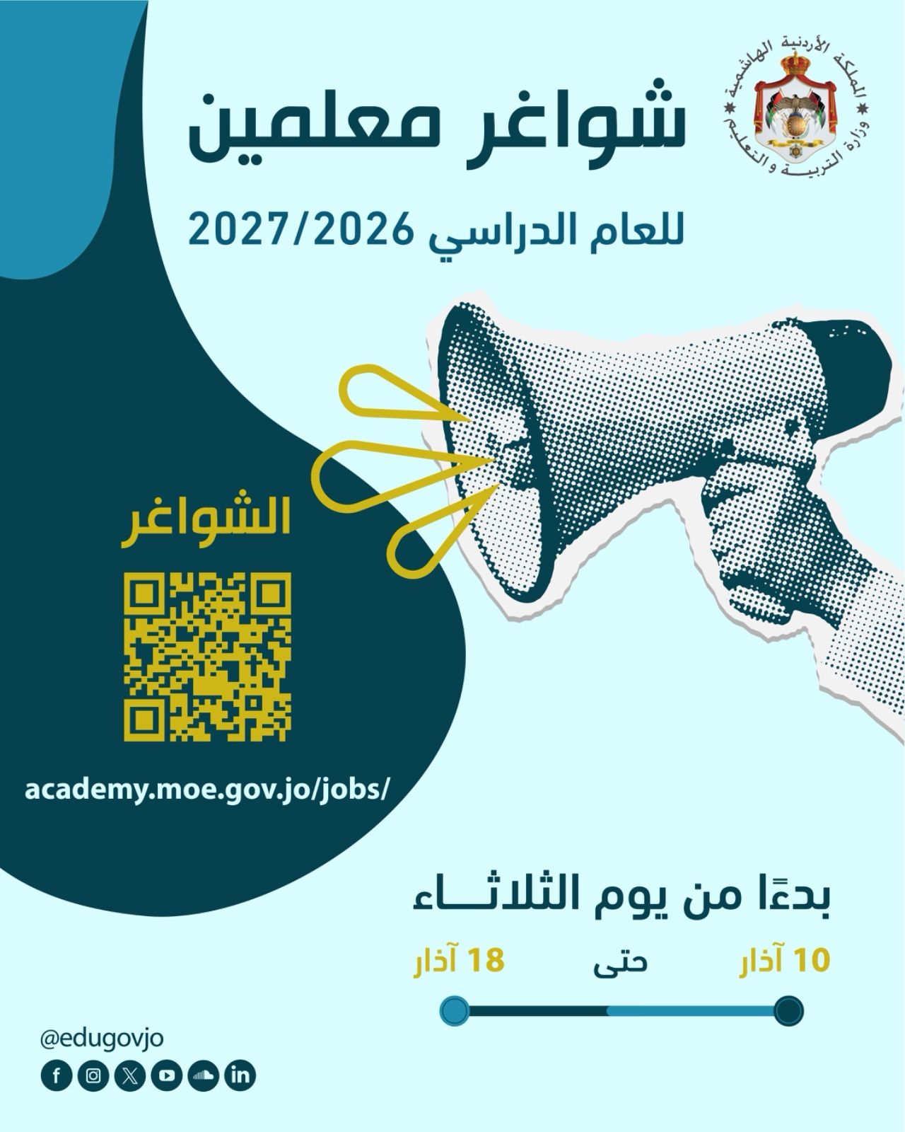 ويعد هذا الإعلان من أهم وظائف التعليم في الأردن التي ينتظرها الكثير من الخريجين الباحثين عن فرصة عمل مستقرة في القطاع التعليمي الحكومي.