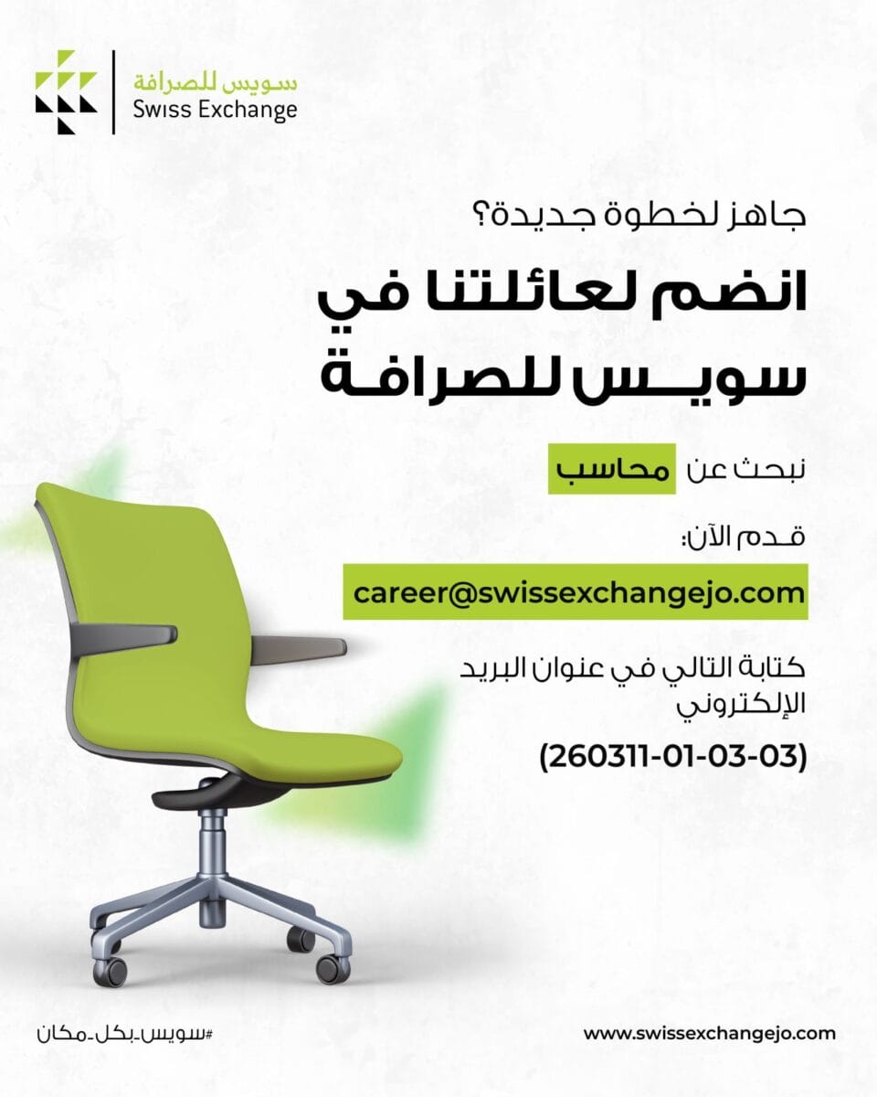 وظائف محاسب في عمان لدى شركة سويس للصرافة