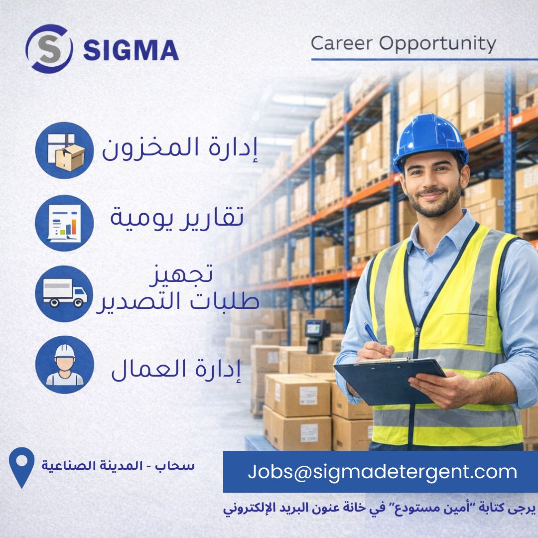 وظائف أمين مستودع في سحاب لدى شركة سيجما لصناعة المنظفات