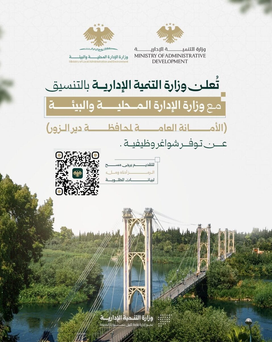 كما تعد هذه الفرصة مناسبة للراغبين في العمل في القطاع الحكومي السوري ضمن مجالات التحول الرقمي والإدارة والخدمات الإدارية.