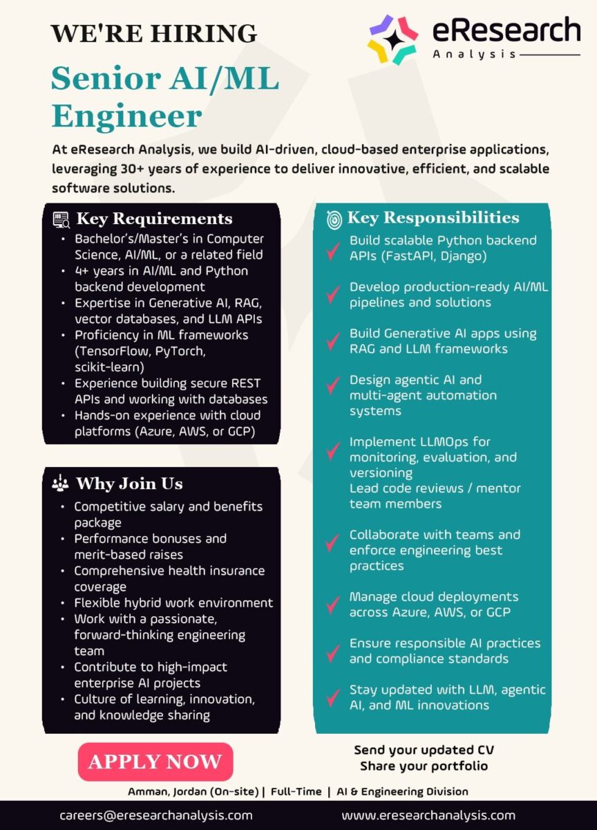 كما تعد هذه الفرصة مناسبة للمهندسين الباحثين عن وظائف شركات التكنولوجيا في الأردن والراغبين في تطوير مسيرتهم المهنية في مجالات الذكاء الاصطناعي التوليدي وتطوير الأنظمة الذكية.