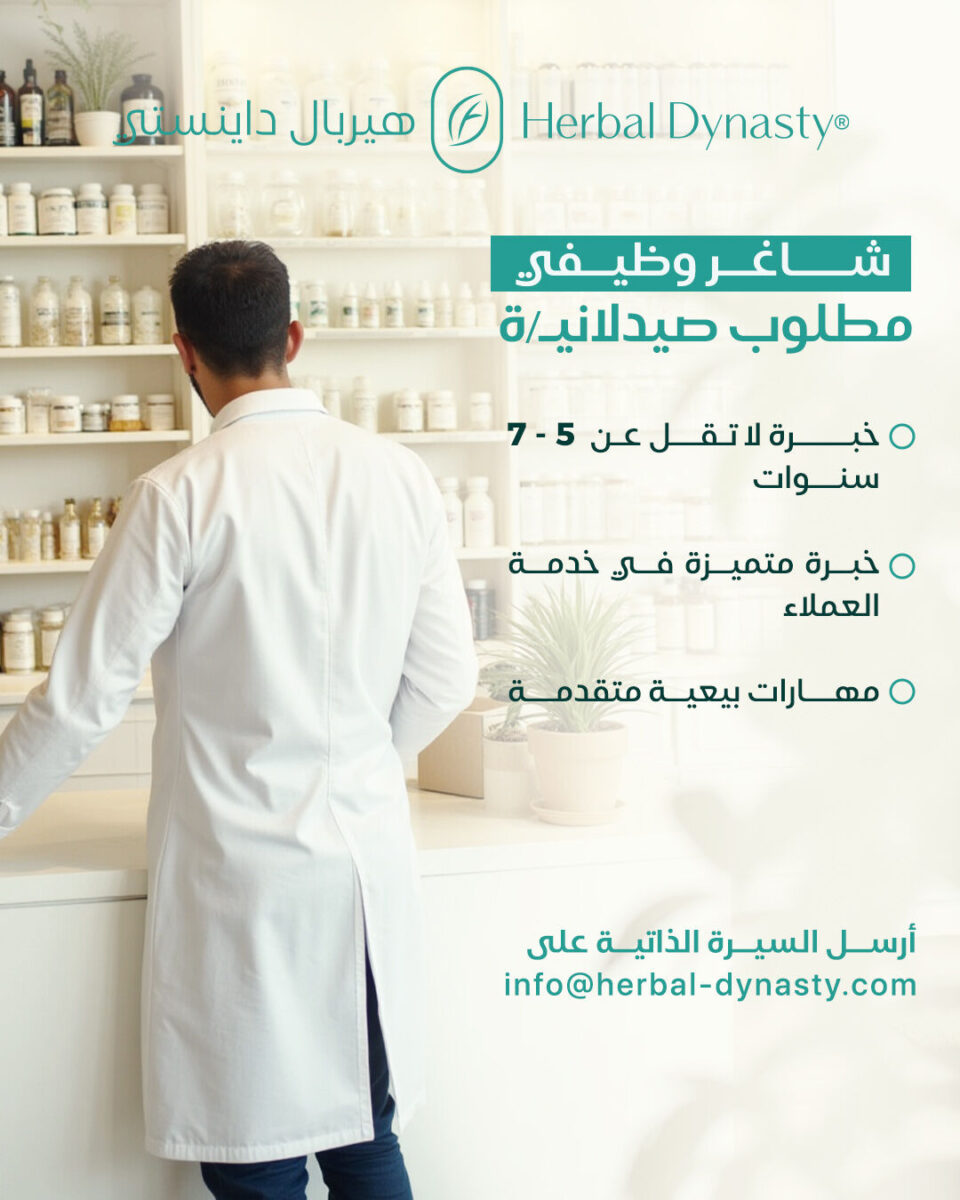 تعلن شركة السلالة العشبية للمستحضرات الطبيعية في عمان – الأردن عن حاجتها إلى صيدلاني/ـة للعمل في المناوبات الصباحية والمسائية لعام 2025.