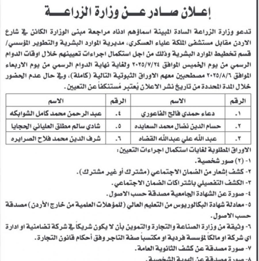 وظائف شاغرة في وزارة الصحة الأردنية 2025