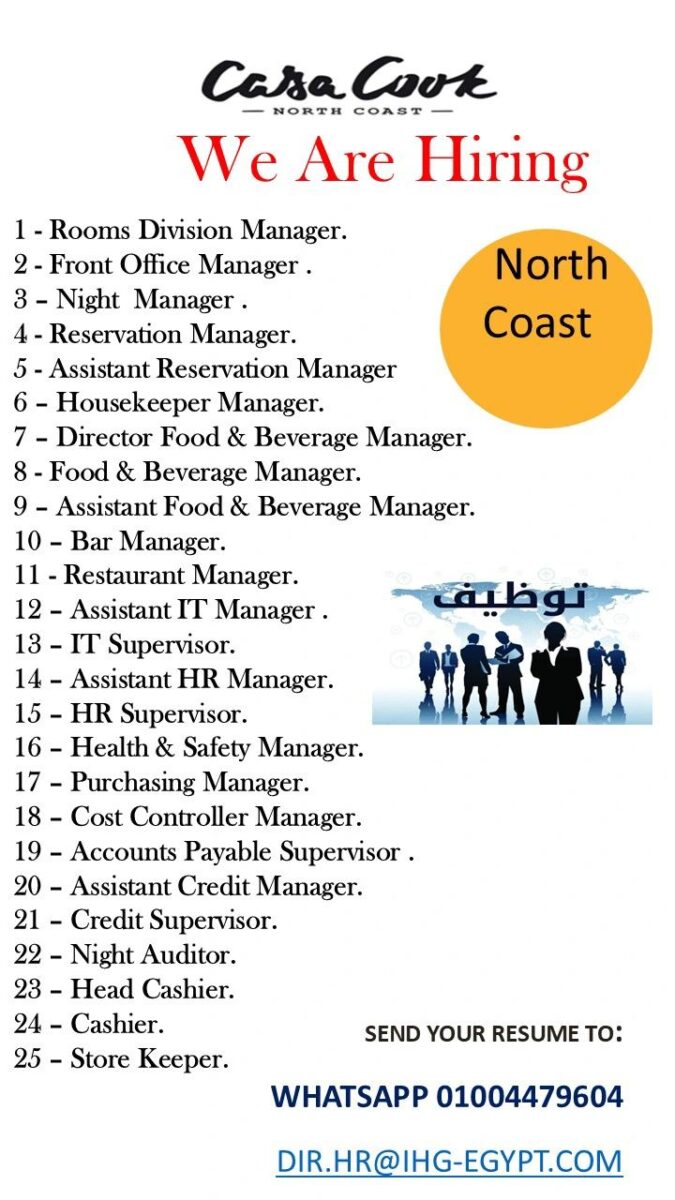 وظائف فندقية متعددة في الساحل الشمالي لدى شركة Casa Cook Hotel