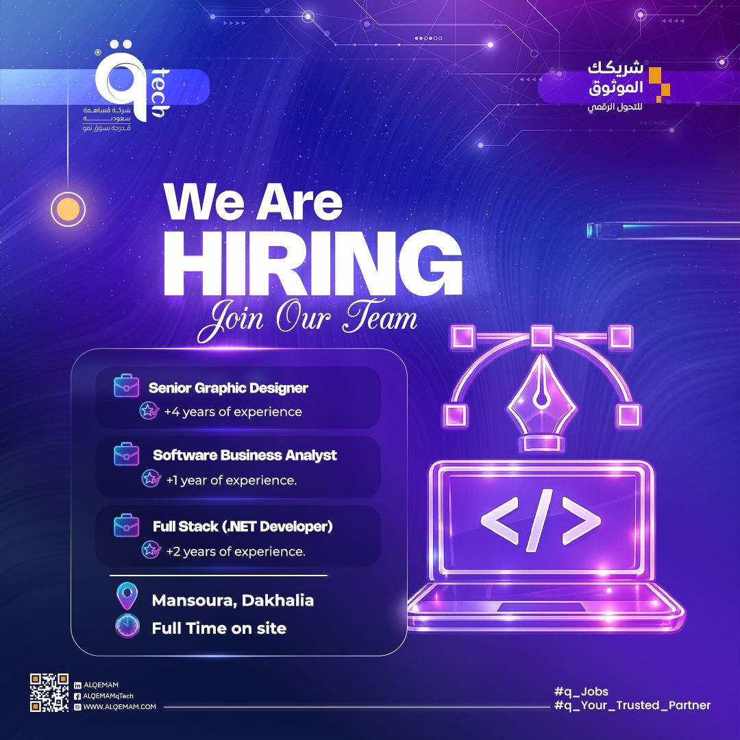 للتقديم على وظائف qTech في القاهرة والمنصورة: