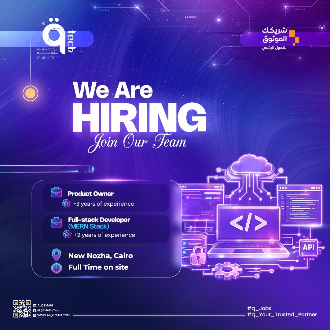 تشهد مصر اليوم نموًا كبيرًا في وظائف التكنولوجيا والتحول الرقمي، حيث أعلنت شركة qTech عن توفر وظائف تقنية في القاهرة والمنصورة في عدة تخصصات.
