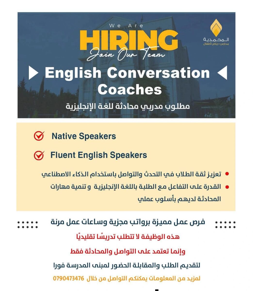 مدربي محادثة إنجليزية في عمّان لدى مدارس الحميدية