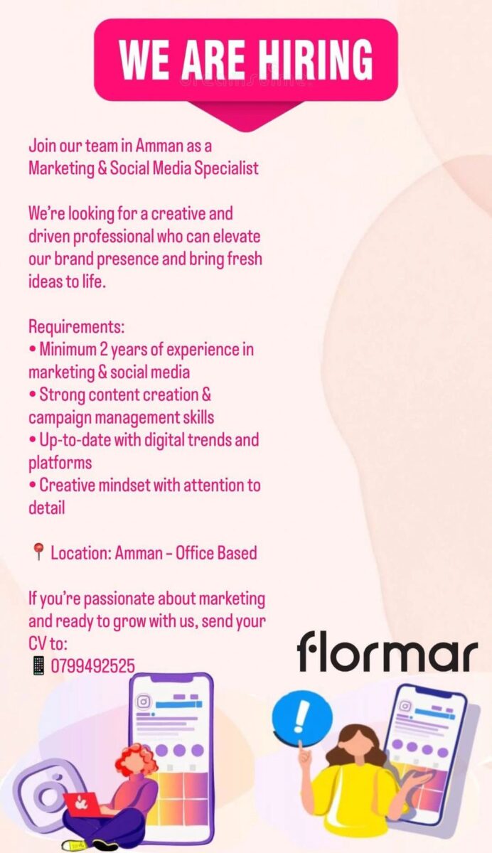 🏷️ أخصائي تسويق وسوشيال ميديا في عمّان لدى فلورمار