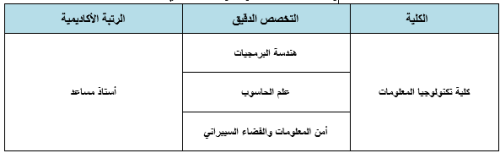 📌 كلية تكنولوجيا المعلومات – رتبة: أستاذ مساعد