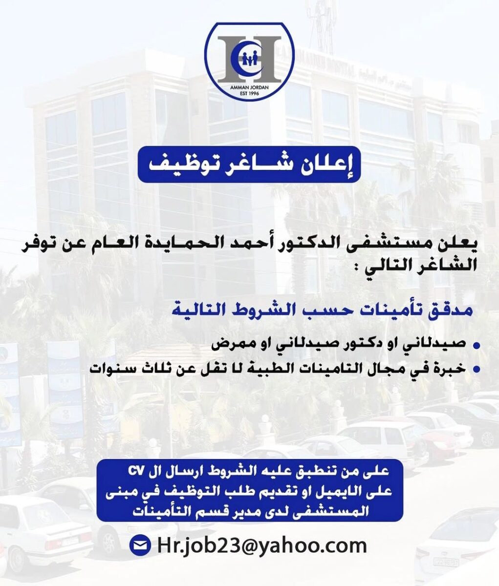 🏷️ مدقق تأمينات طبية في عمّان لدى مستشفى الحمايدة