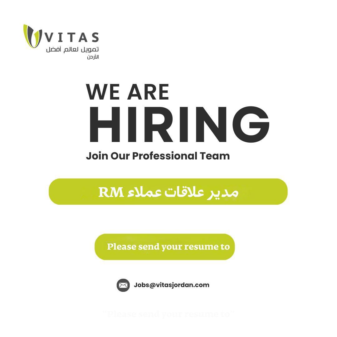 📄 تعلن شركة Vitas Jordan عن فرصة وظيفية بمسمى مدير علاقات عملاء، للعمل ضمن فريق احترافي في قطاع التمويل مع نظام حوافز يعتمد على الأداء