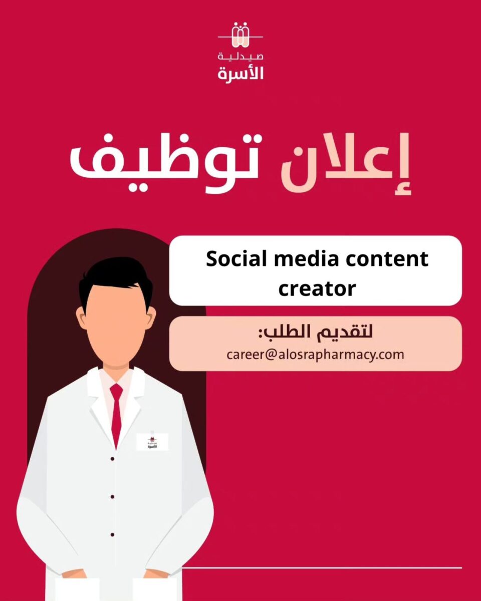 تعلن صيدليات الأسرة عن توفر وظائف صيدلي سوشيال ميديا في الزرقاء 2025 بدوام كامل للعمل كـ Social Media Content Creator، على أن يكون المتقدم صيدلاني/ـة ولديه شغف بابتكار المحتوى الإبداعي.