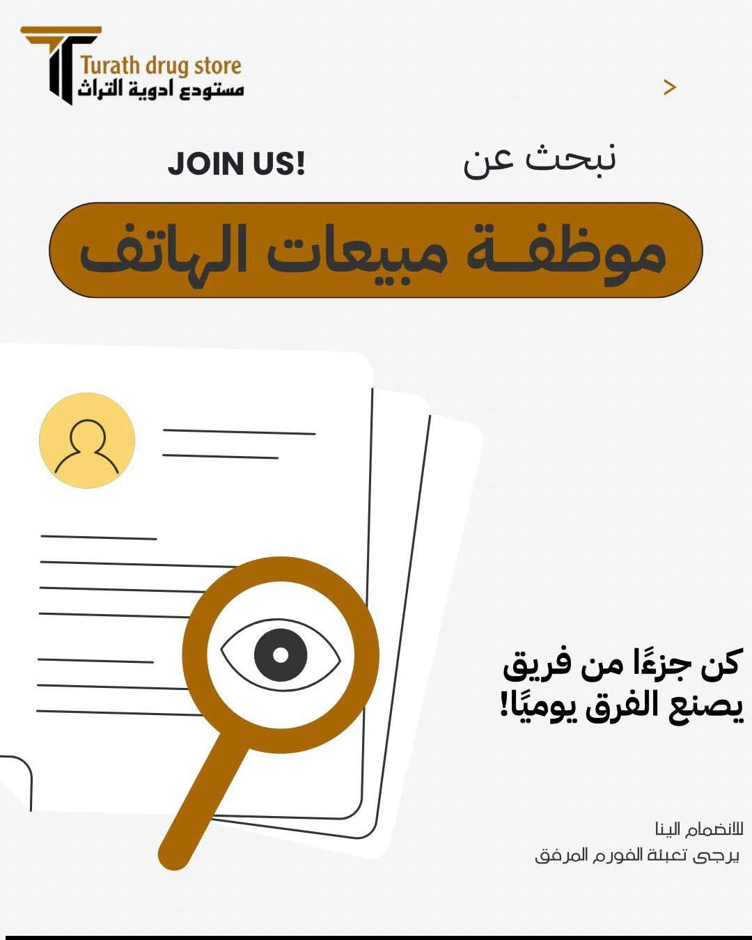 📄 فرصة عمل في مجال المبيعات الهاتفية (Telesales) لدى مستودع أدوية التراث في منطقة المقابلين – عمّان، مناسبة لمن تمتلك مهارات التواصل والإقناع