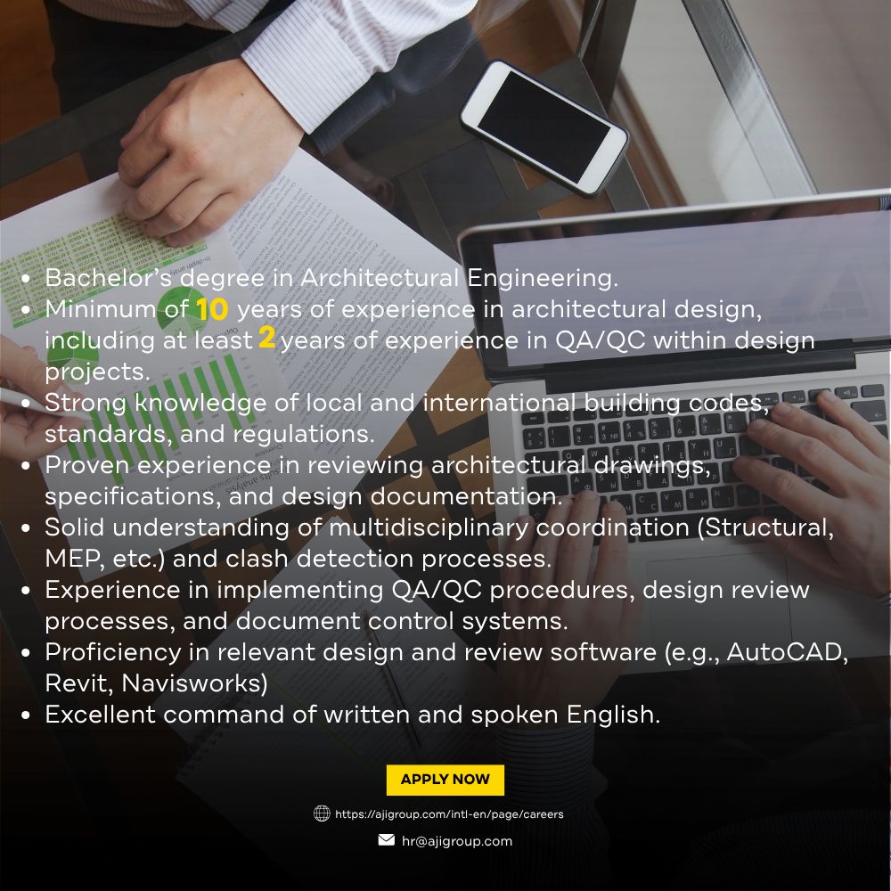 📄 فرصة هندسية في عمّان بمسمى QA/QC Architect لدى شركة AJi Group، تستهدف أصحاب الخبرة في الجودة المعمارية ومراجعة التصاميم
