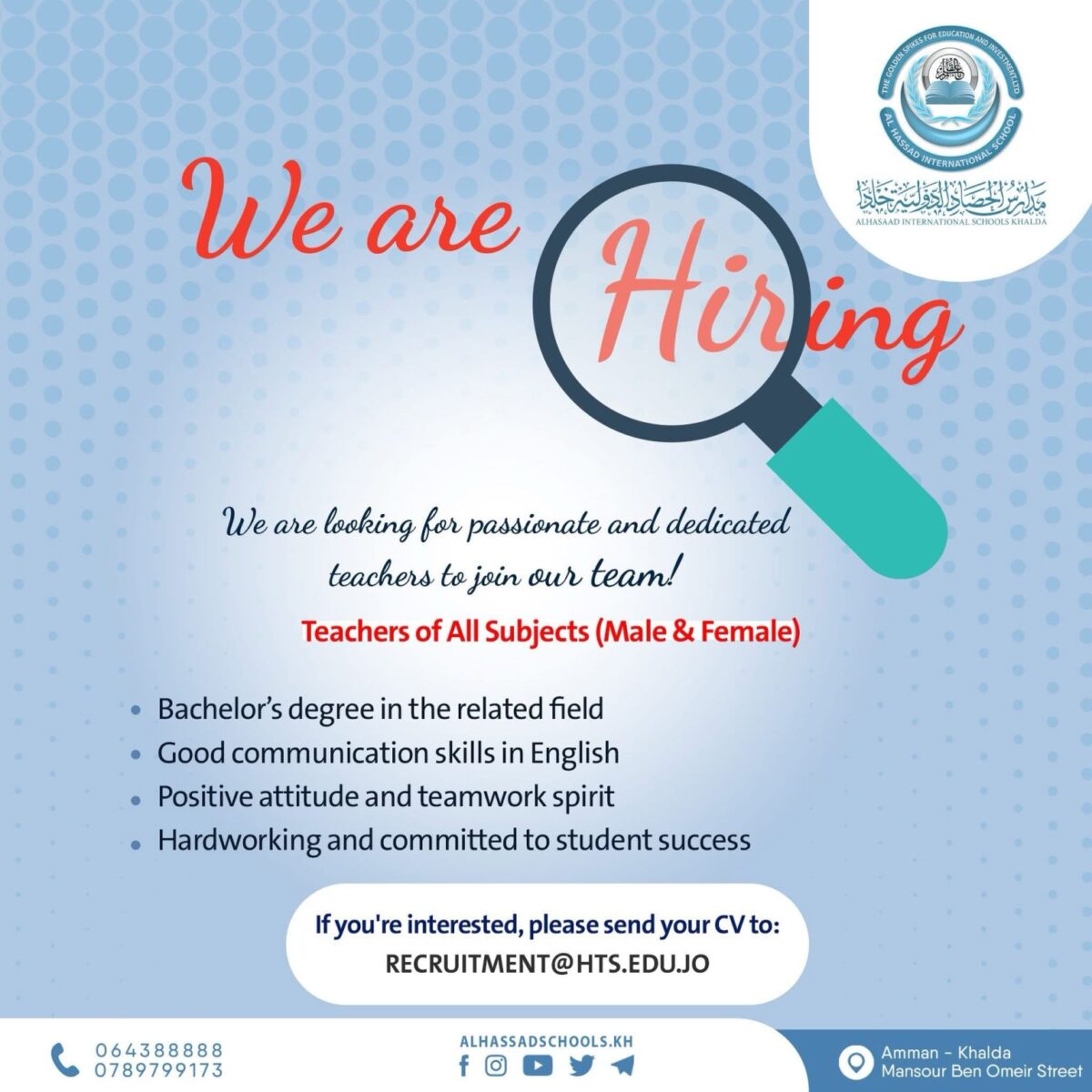 معلمون ومعلمات في عمّان لدى مدارس الحصاد الدولية فرصة مميزة للانضمام إلى بيئة تعليمية حديثة تبحث عن شغف التعليم وصناعة التأثير الحقيقي.