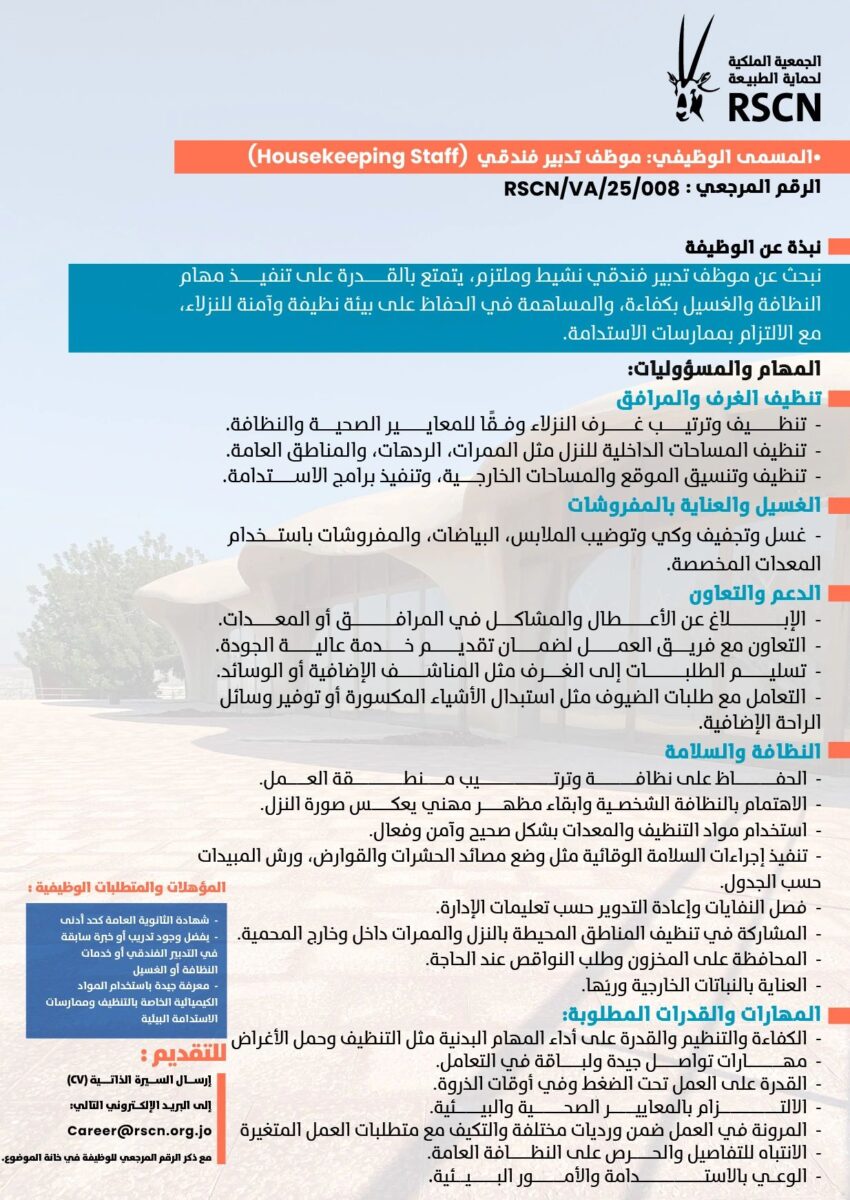 وظيفة موظف تدبير فندقي – Housekeeping Staff – الأردن 2025