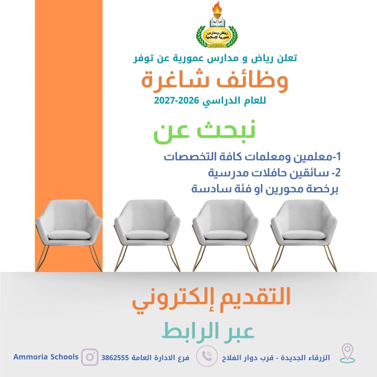 🏷️ وظائف تعليمية وسائقين في الزرقاء لدى مدارس عمورية
