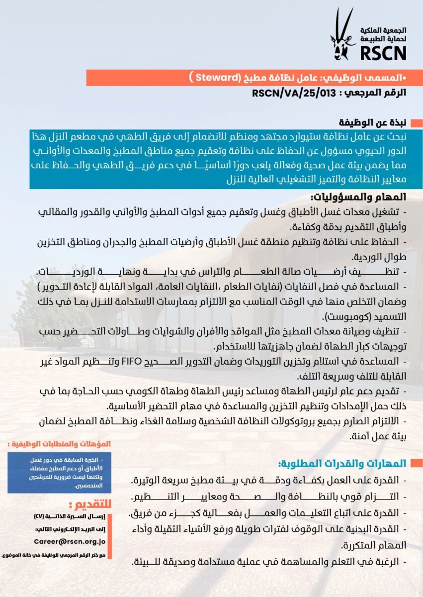 يرجى إرسال السيرة الذاتية (CV) إلى البريد الإلكتروني: [email protected] مع ذكر الرقم المرجعي RSCN/VA/25/013.