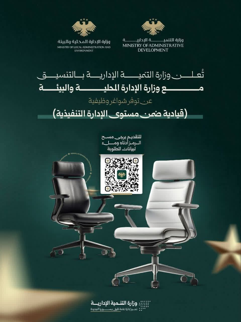 فرص عمل قيادية في دمشق سوريا لدى وزارة التنمية الإدارية بالتعاون مع وزارة الإدارة المحلية ضمن الإدارة التنفيذية
