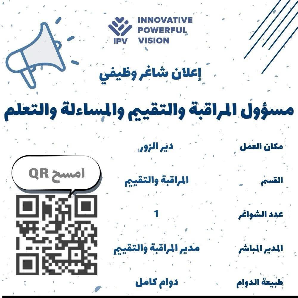 - المسمى: مسؤول المتابعة والتقييم والمساءلة والتعلم