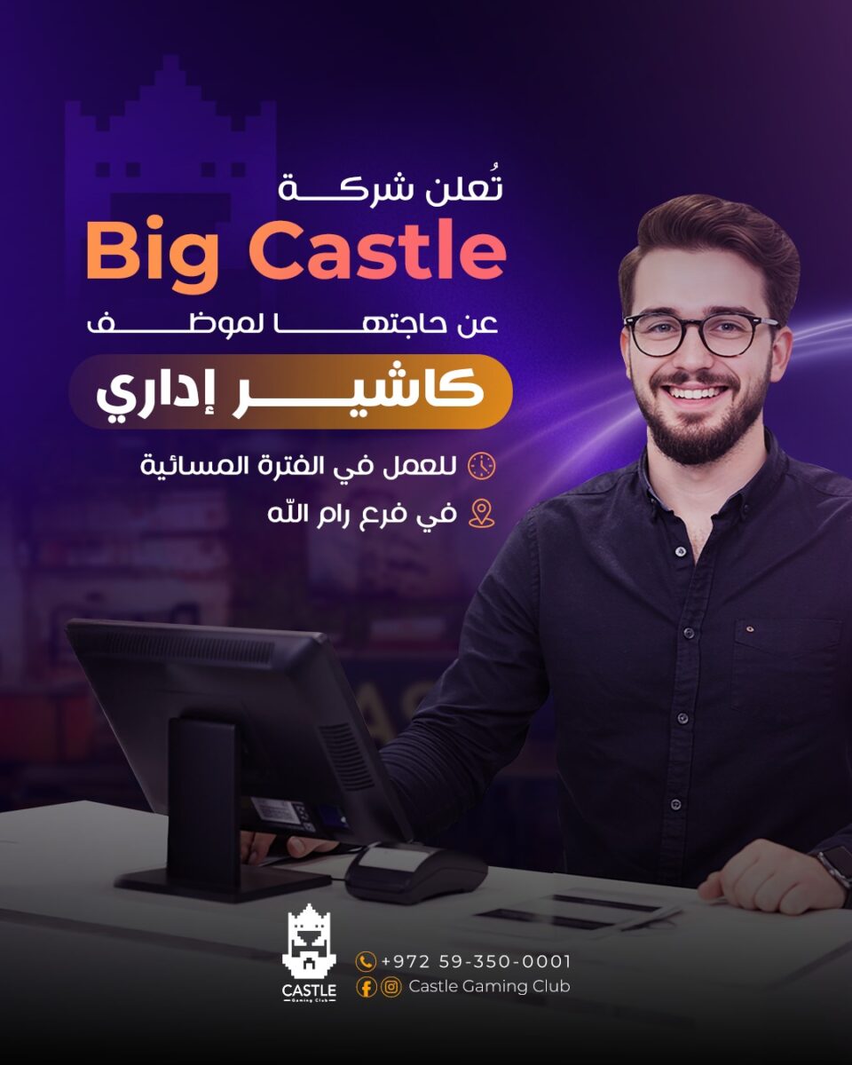 تُعلن شركة Big Castle – فرع رام الله عن حاجتها لتعيين موظف كاشير إداري للعمل في الفترة المسائية في رام الله والبيرة.