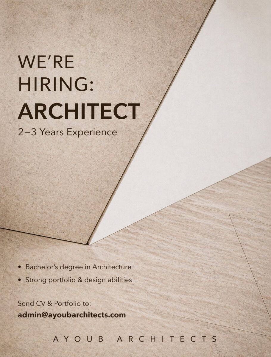 تطرح Ayoub Architects فرصة Architect في عمّان، الأردن ضمن سوق معماري يقدّر التفكير التصميمي الدقيق والقدرة على تحويل الأفكار إلى حلول متوازنة بين الجمال والوظيفة. هذه الوظيفة مناسبة للمعماريين الذين يملكون خبرة عملية مبكرة لكن واضحة، ويريدون العمل داخل استوديو يهتم بجودة التصميم، التفاصيل، وبناء مشاريع تحمل طابعًا معماريًا متماسكًا وسياقيًا.