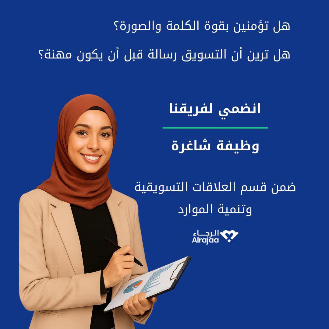 تعلن مؤسسة الرجاء – القدس، بيت حنينا عن حاجتها لتعيين موظفة للعمل ضمن قسم العلاقات التسويقية وتنمية الموارد بدوام كامل لعام 2025.
