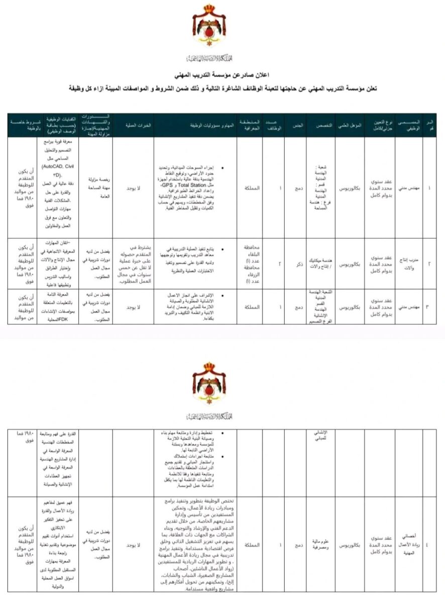 وظائف مؤسسة التدريب المهني في الأردن 2026
