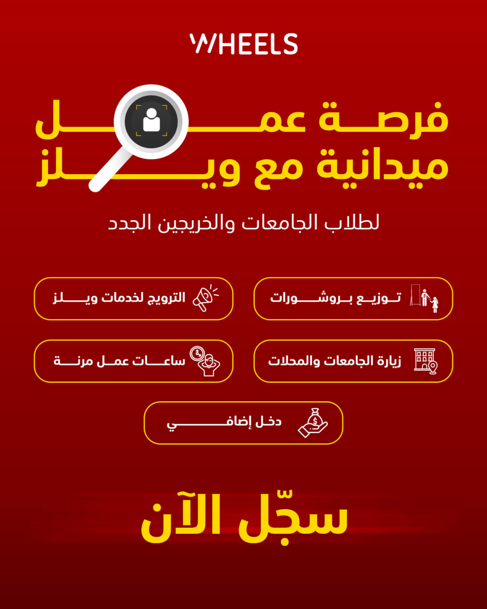 تعلن شركة ويلز (Wheels) عن فتح باب التوظيف لطلاب الجامعات والخريجين الجدد للعمل كمروّجين ميدانيين في مختلف مدن الضفة الغربية – فلسطين.