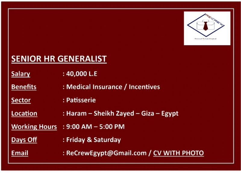 🧑💼 Senior HR Generalist – قطاع الحلويات