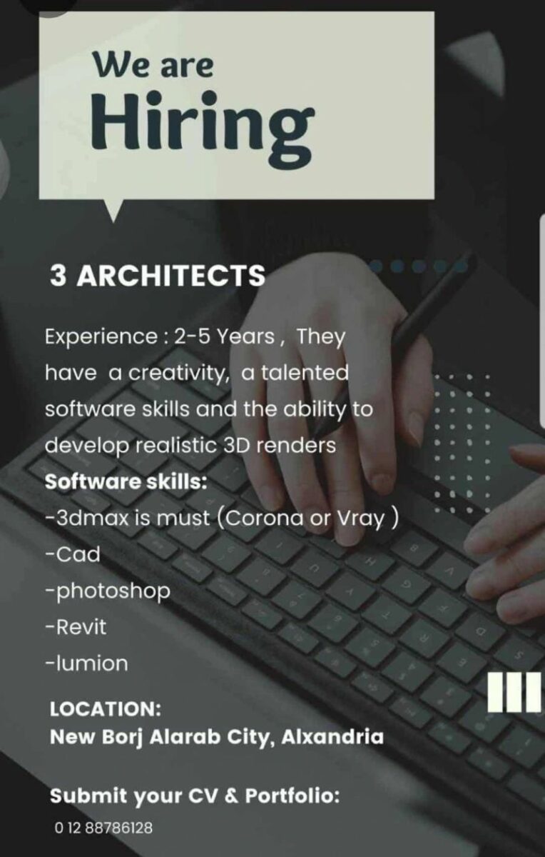 🔹 المهارات المطلوبة: 3D Max (Corona/Vray)، AutoCAD، Revit، Lumion، Photoshop