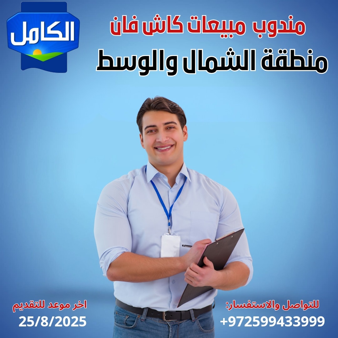 وظائف مندوب مبيعات كاش فان – الكامل ألبان وأجبان بلدية جنين 2025