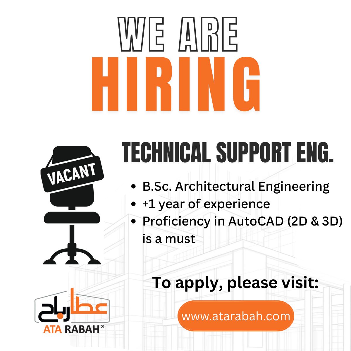 تعلن شركة عطا رباح عن رغبتها في توسيع فريقها وتوفر فرصة عمل مميزة بمسمى: مهندس دعم فني (Technical Support Engineer) للعمل بدوام كامل في عمان – الأردن.