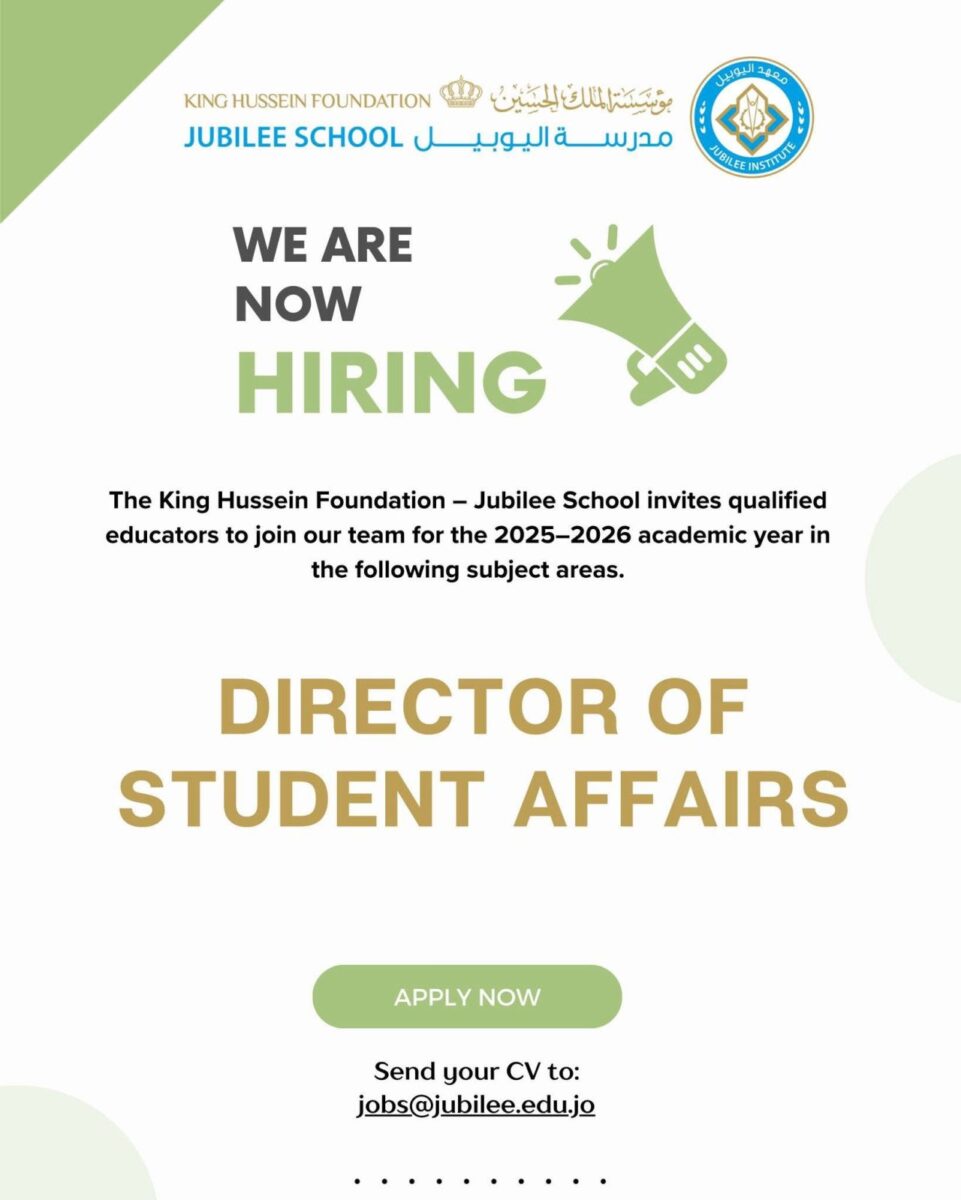 📢 وظائف في عمّان 2025 – مدرسة اليوبيل تعلن عن شاغر “مدير شؤون الطلبة”