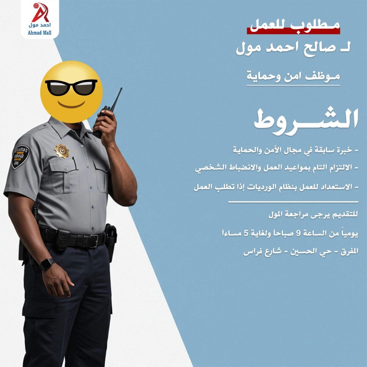 وظائف شاغرة في أحمد مول – موظف أمن وحماية في عمان 2025