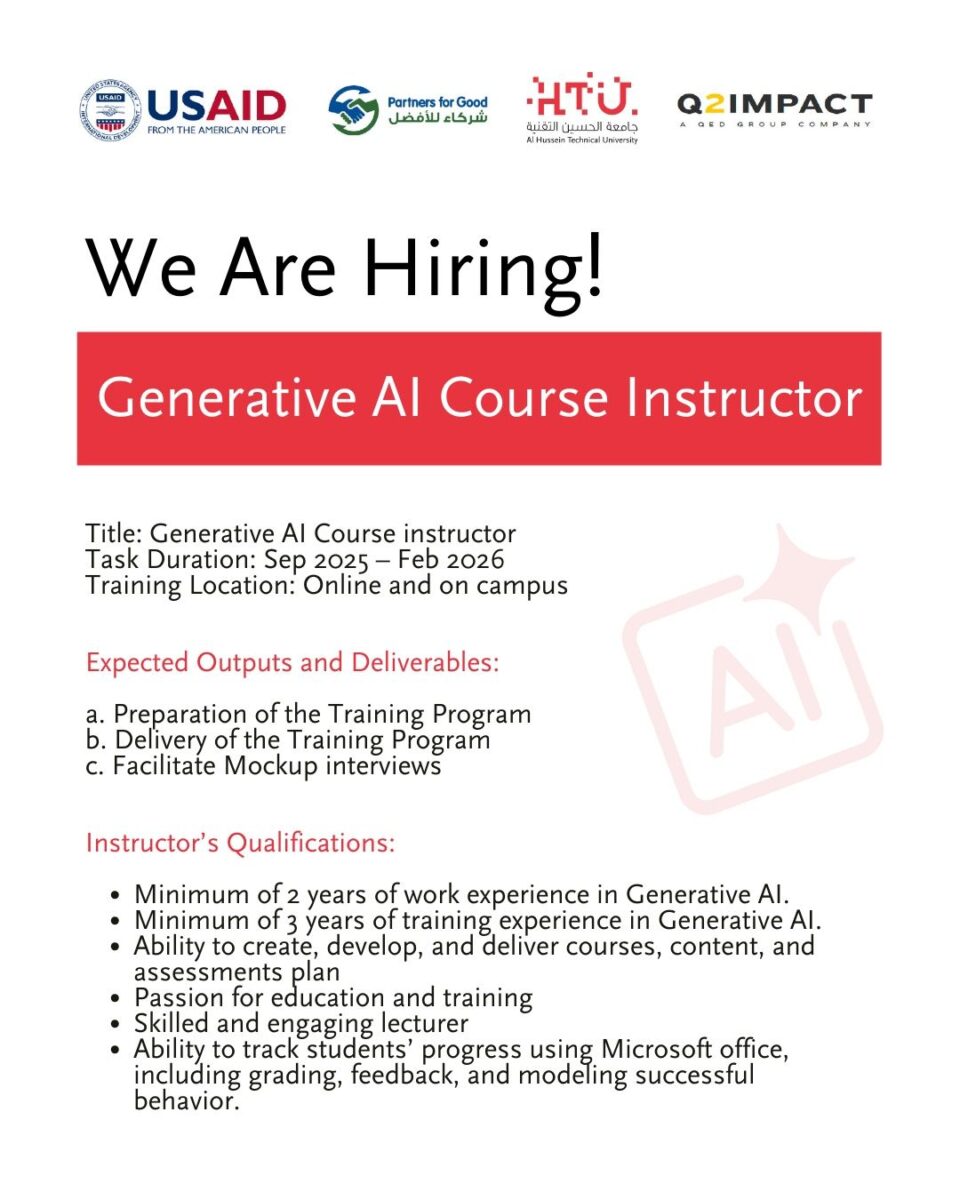 انضم إلى فريق تدريبي يسهم في تمكين الشباب الأردني من مهارات سوق العمل العالمي!