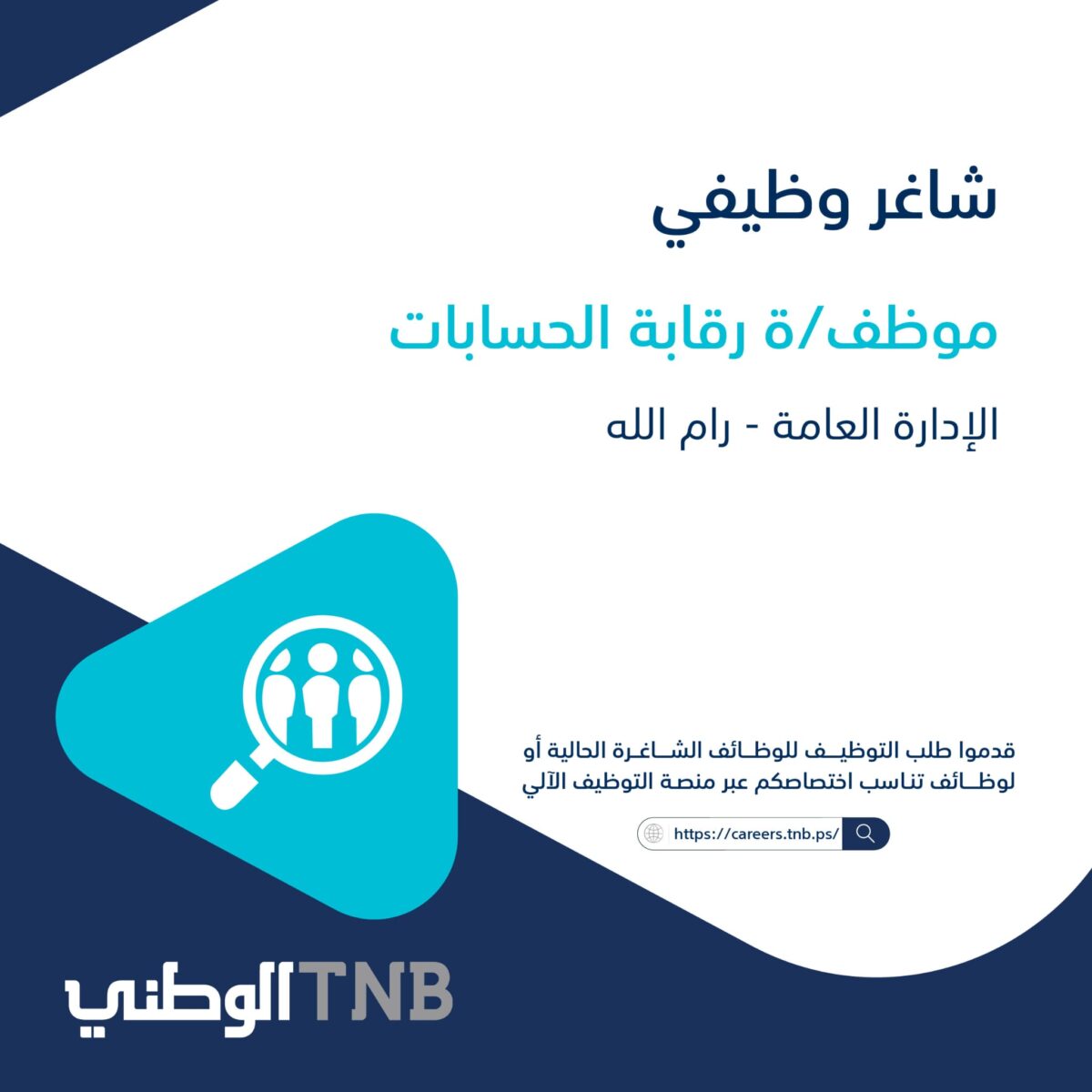 يعلن البنك الوطني عن حاجته لتعيين موظف/ة رقابة الحسابات للعمل بدوام كامل في رام الله والبيرة.