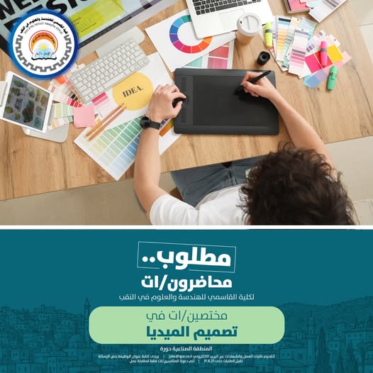 تعلن كلية القاسمي للهندسة والعلوم في النقب عن حاجتها لتوظيف محاضرين/ات في تخصص تصميم الميديا للانضمام إلى الفريق الأكاديمي والمساهمة في مسيرة التعليم والإنجاز.
