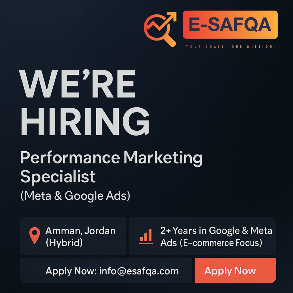 تعلن شركة Esafqa عن توفر وظائف تسويق إلكتروني في عمان 2025 للعمل ضمن فريقها المتميز، وذلك في وظيفة Performance Marketing Specialist (Meta & Google Ads) بنظام عمل هجين.