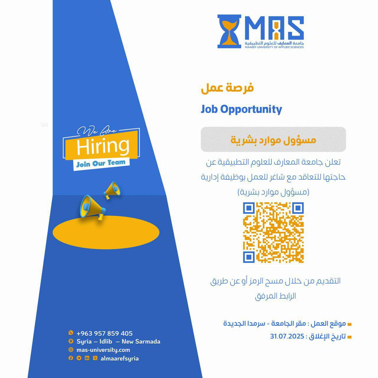 📢 إعلان توظيف – شواغر إدارية في جامعة المعارف للعلوم التطبيقية