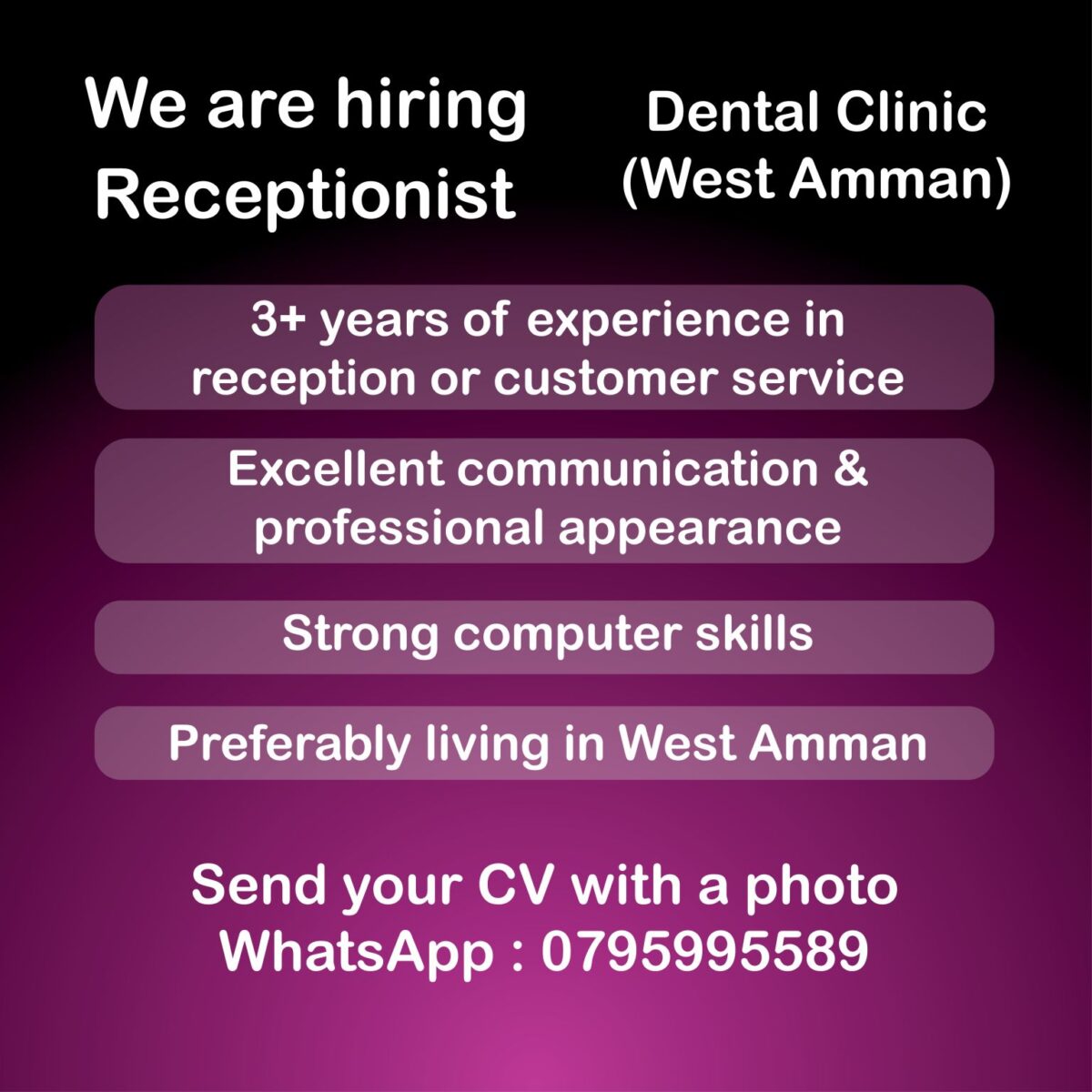وظيفة استقبال في عيادة أسنان | عمان الغربية 2025