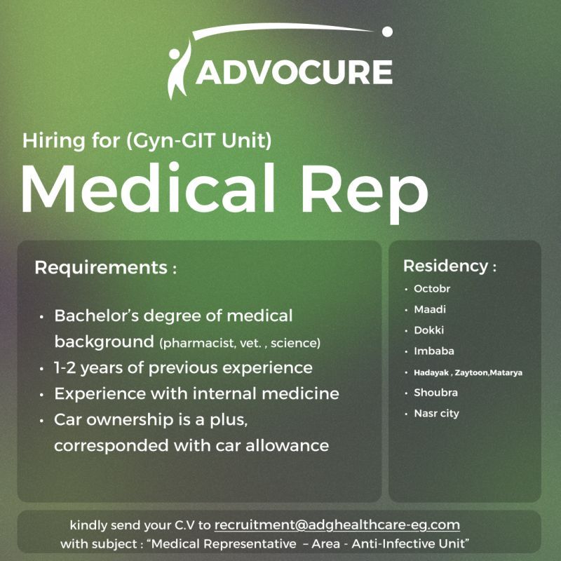 ✉️ عنوان الإيميل:Medical Representative – Area – Anti-Infective Unit